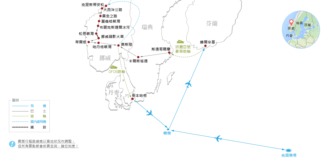 出門在外旅行,「時間」就是稀有財!為了節省移動時間不惜成本安排一段內陸航班與《詩麗雅豪華遊輪》、《DFDS遊輪》;另外還搭配高人氣《奈洛伊峽灣遊船》讓您體驗高聳峭壁與碧海藍天交織之美、《挪威縮影火車》親近斯堪地那維亞鬼斧神工山川景色...讓您從各種角度欣賞北歐迷人山川風光。