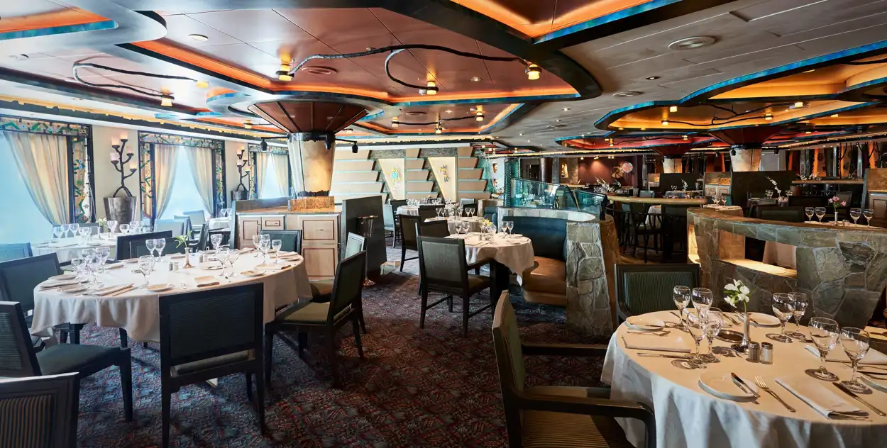 22. 遊輪上精緻的午、晚餐,無論是主菜或是開胃菜、甜點,皆可隨心所欲。每天的菜色都有不同的變化。