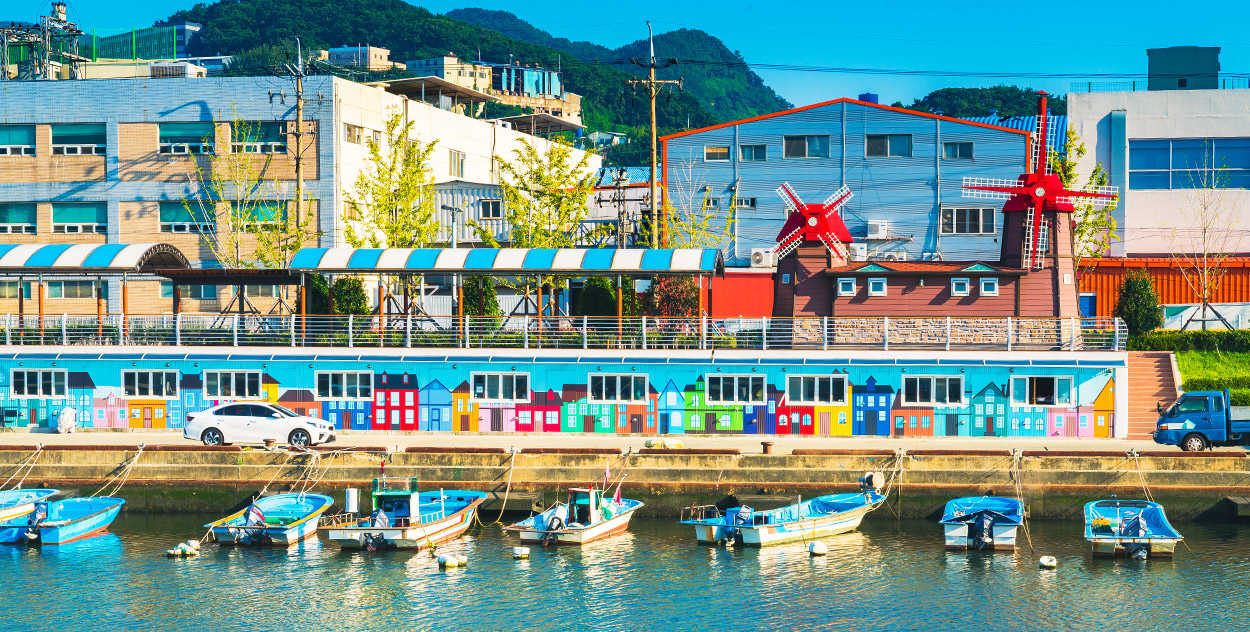 金海韓屋體驗館→文青最愛IG打卡人氣景點~F1963→韓國的希臘聖托里尼~甘川洞彩繪村→無敵海景散策路~白險灘文化村+絕影海岸 |