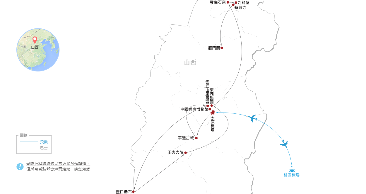 也為您安排直飛航班,從桃園起飛後,約三個多小時即抵達山西太原。